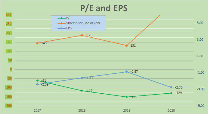 Current Ratio indicates that the company has 3.5 times more current assets than current liabilities while at the same time current liabilities doubled and current assets tripled!! Where are the current assets coming from? We see a huge debt increase in 2020. The Operating income indicates the company cannot pay its liability with its operations since it is increasingly negative for 4 years.
